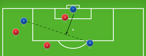 Blue 2 is a defender who is crossing the ball to Blue 3.